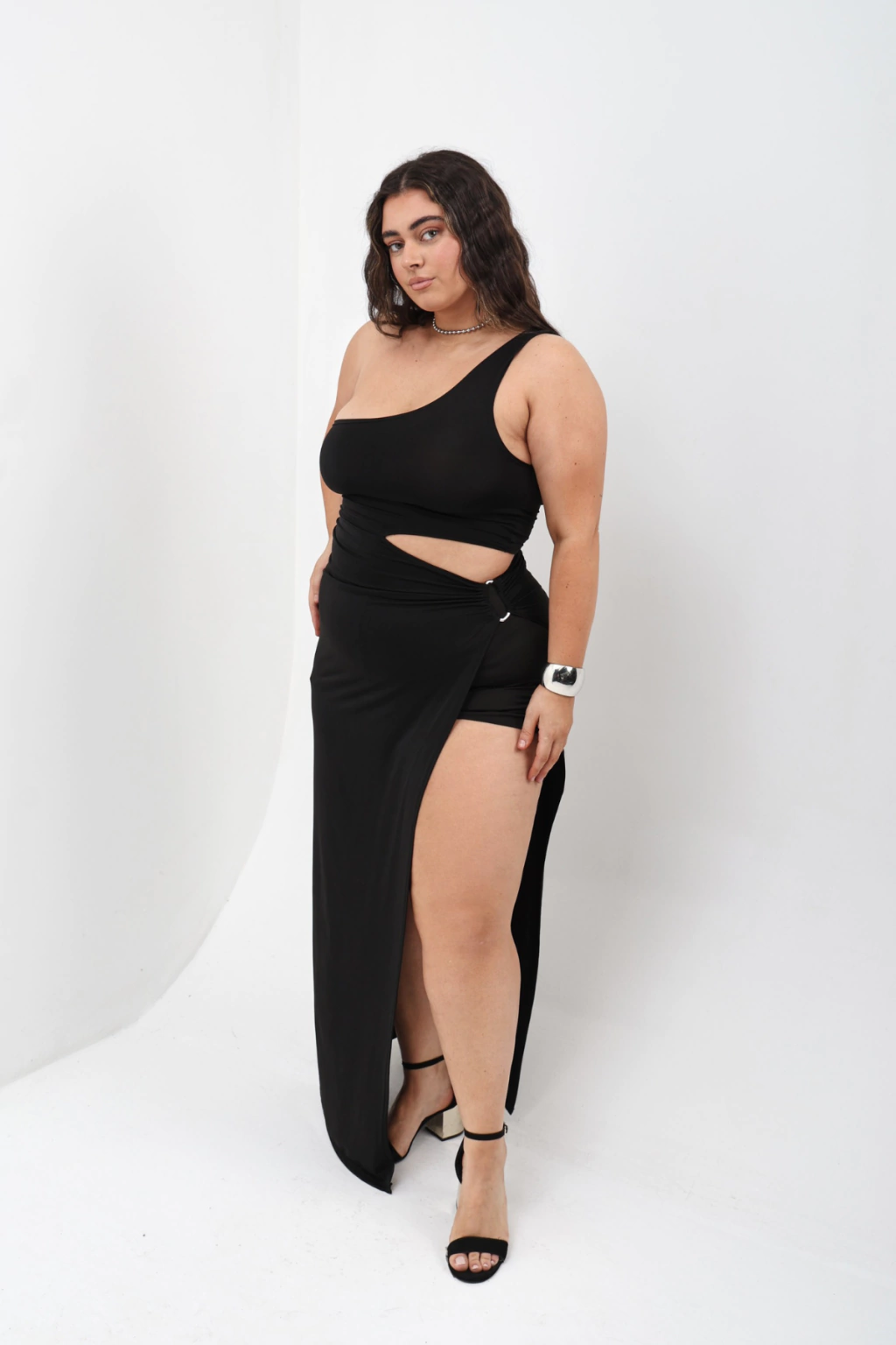 ¡Deslumbrá en tu próxima fiesta con este vestido! Este vestido largo asimétrico, con impactantes recortes y un tajo pronunciado, realza tu silueta y te asegura un look super sexy. Ideal para eventos especiales, su diseño audaz y moderno convierte cada paso en una declaración de estilo incomparables.